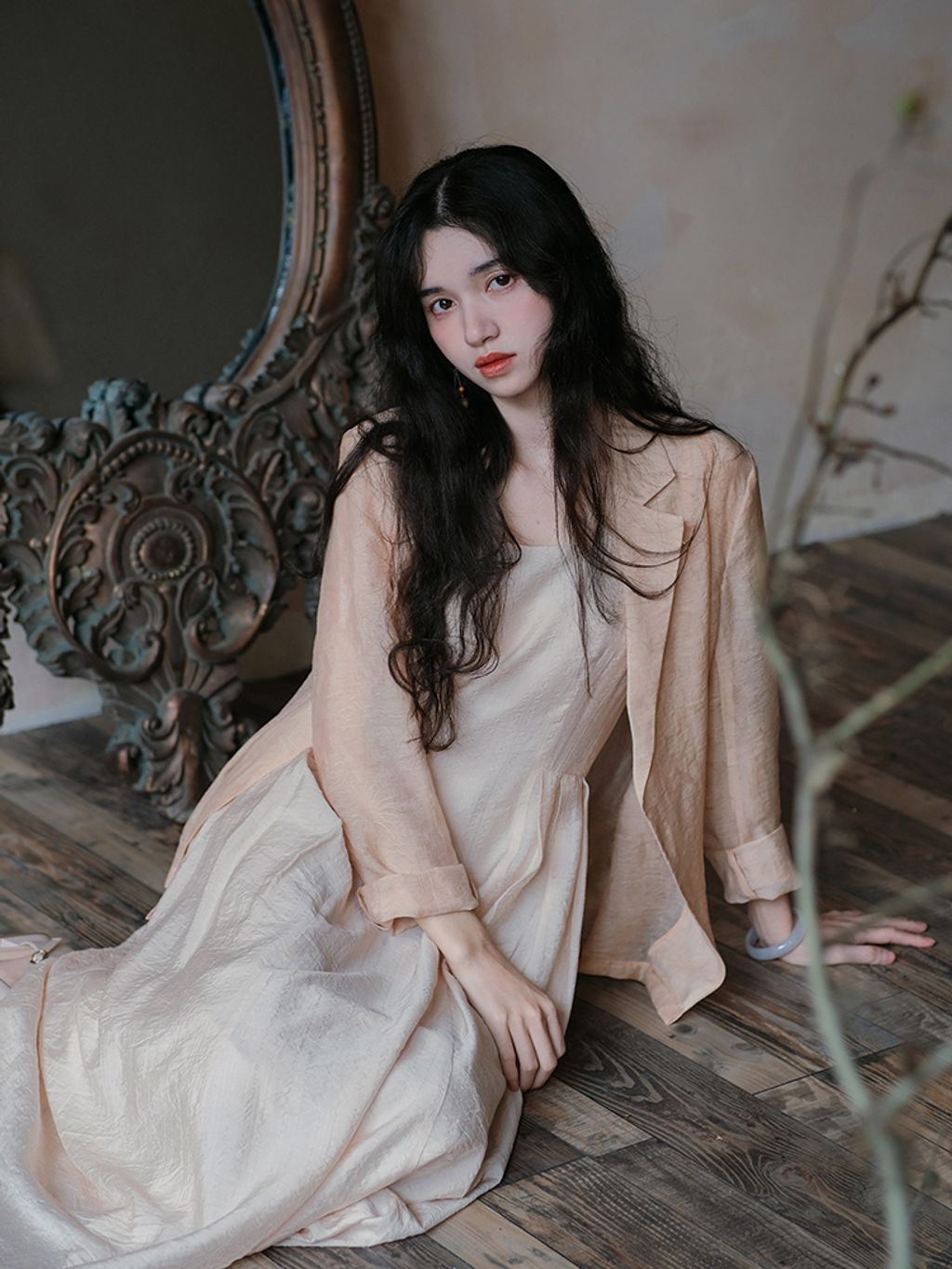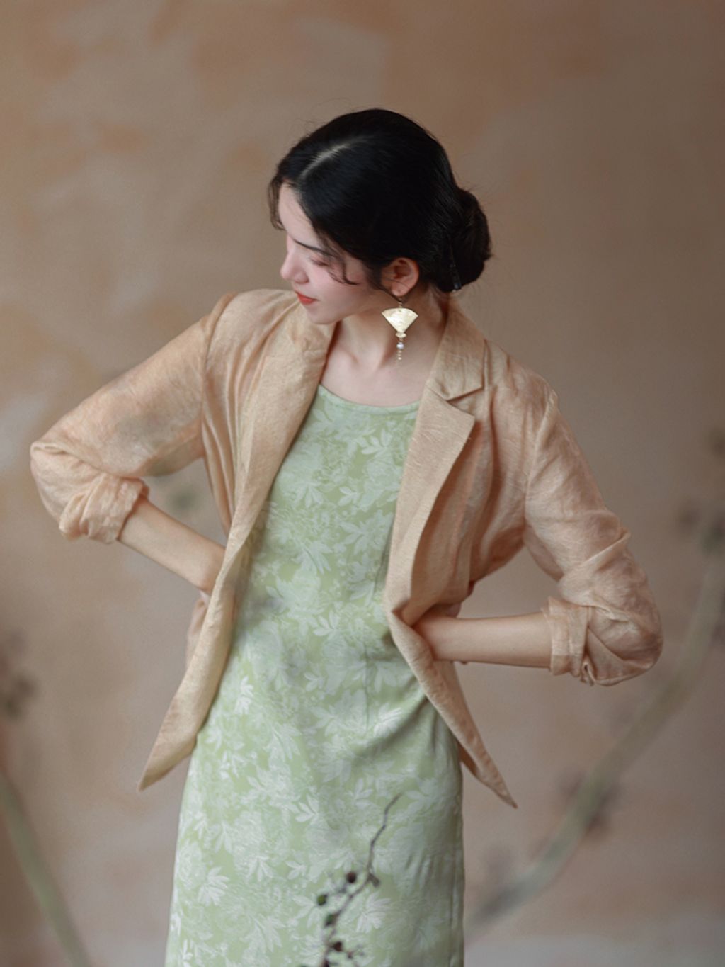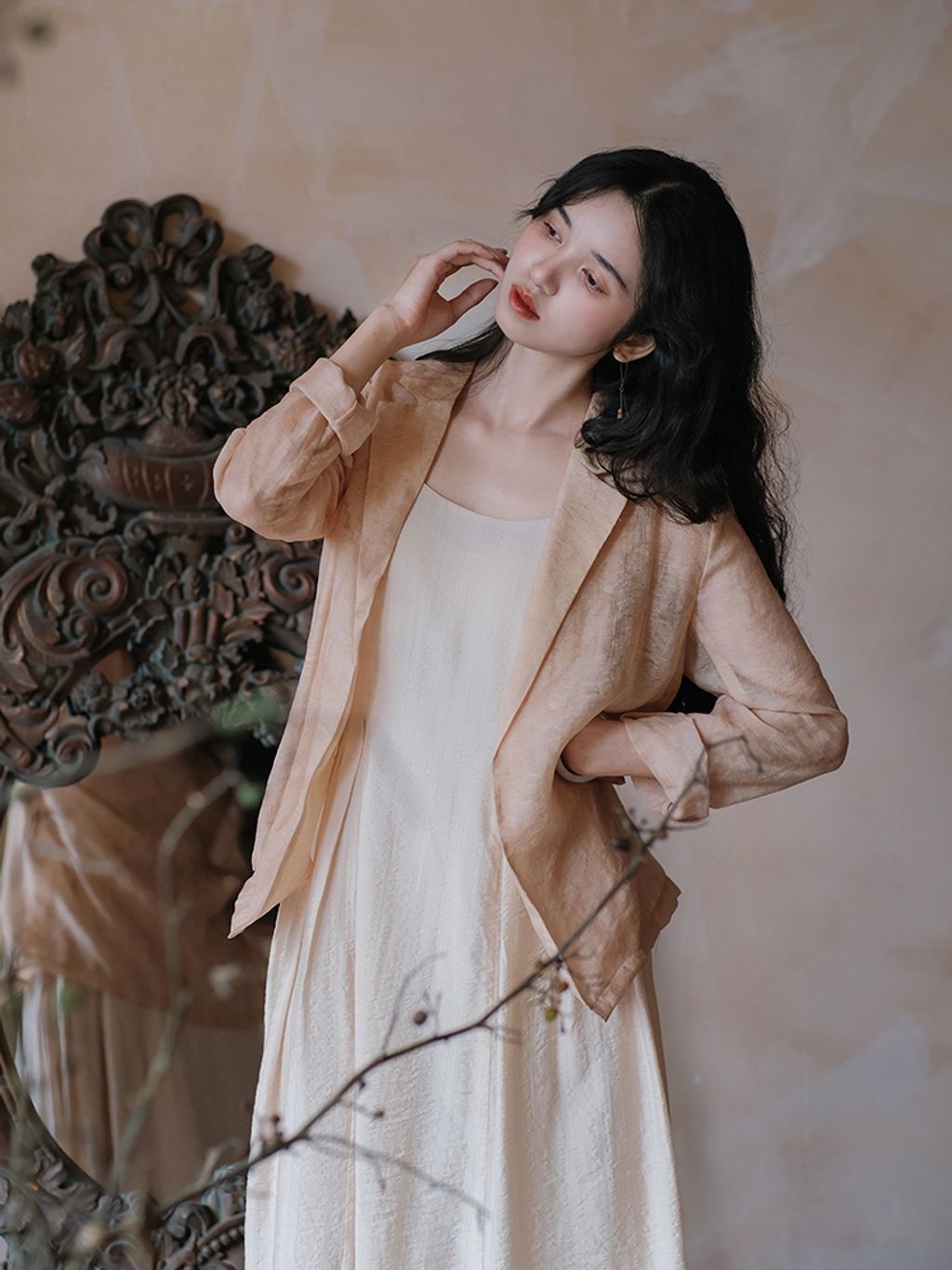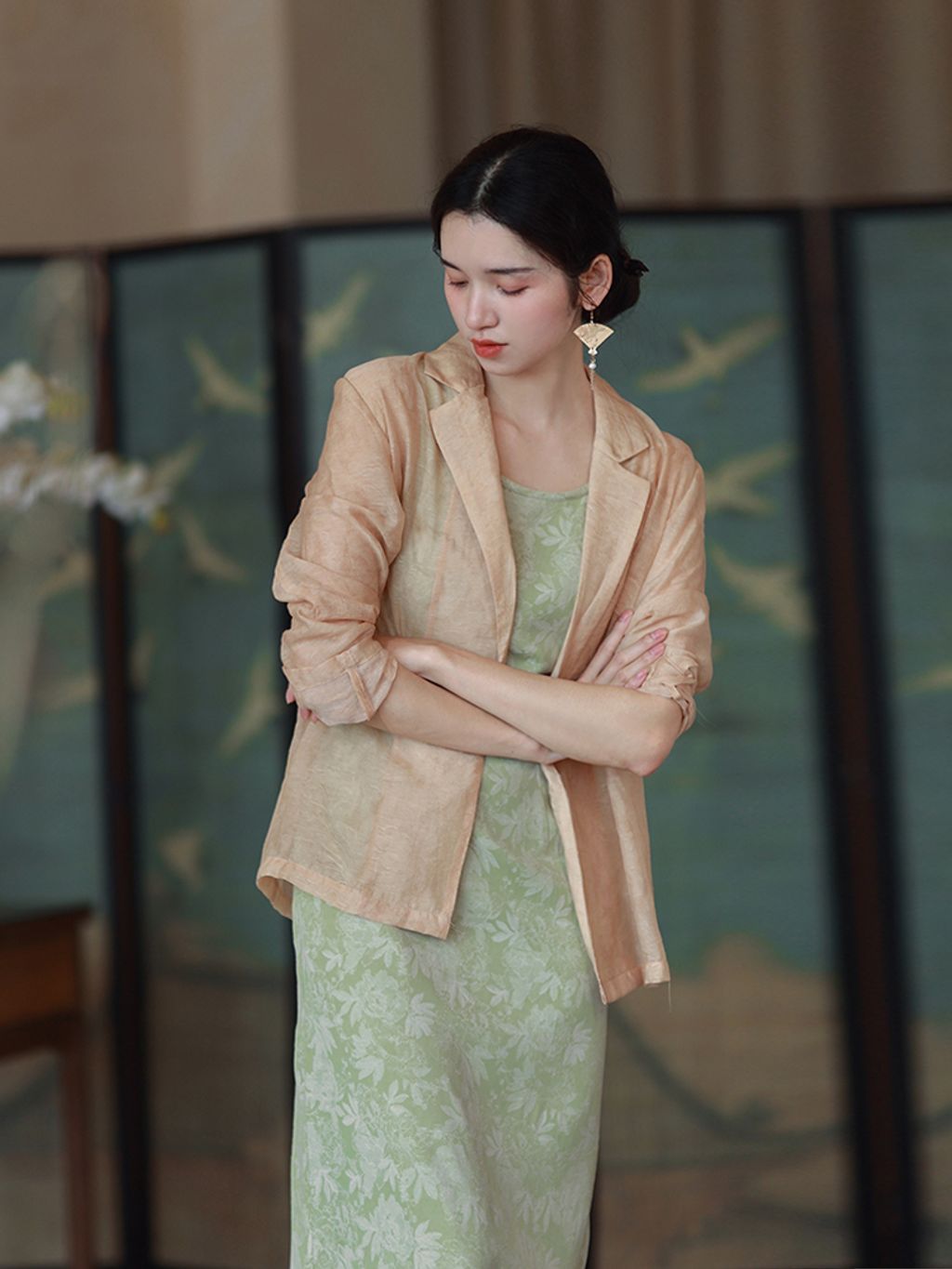 落庭纱 复古天丝素色宽松西装优雅气质轻薄款防晒外衫新